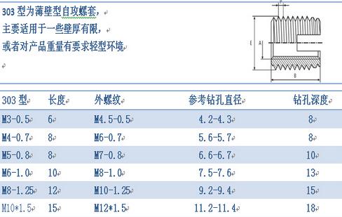 5、我公司有多种型号和规格的自攻螺套可供用户选择。